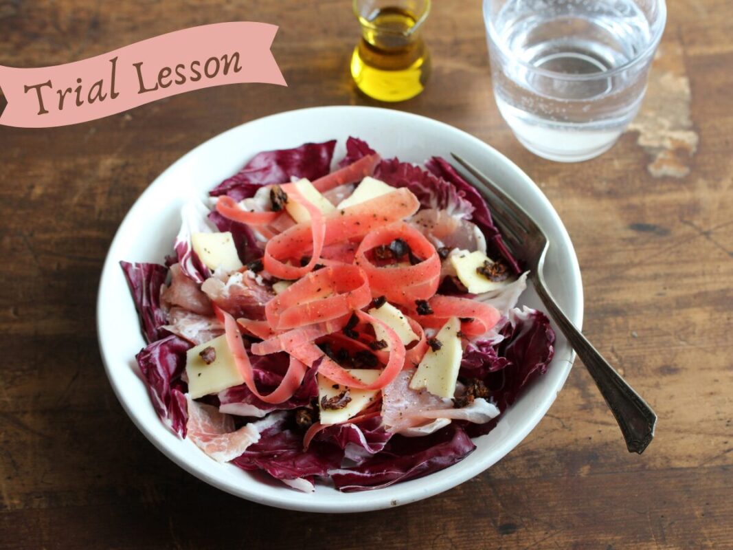 「おいしそう」に見せるためのサラダの盛り付け方を、1回完結で集中して学べます。